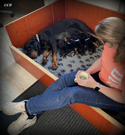 Coco did great and delivered 7 healthy and strong puppies in a few hours.