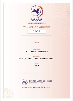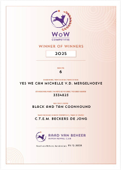 It’s that time of the year that the Winners of Winners certificates are being send by our kennel club.